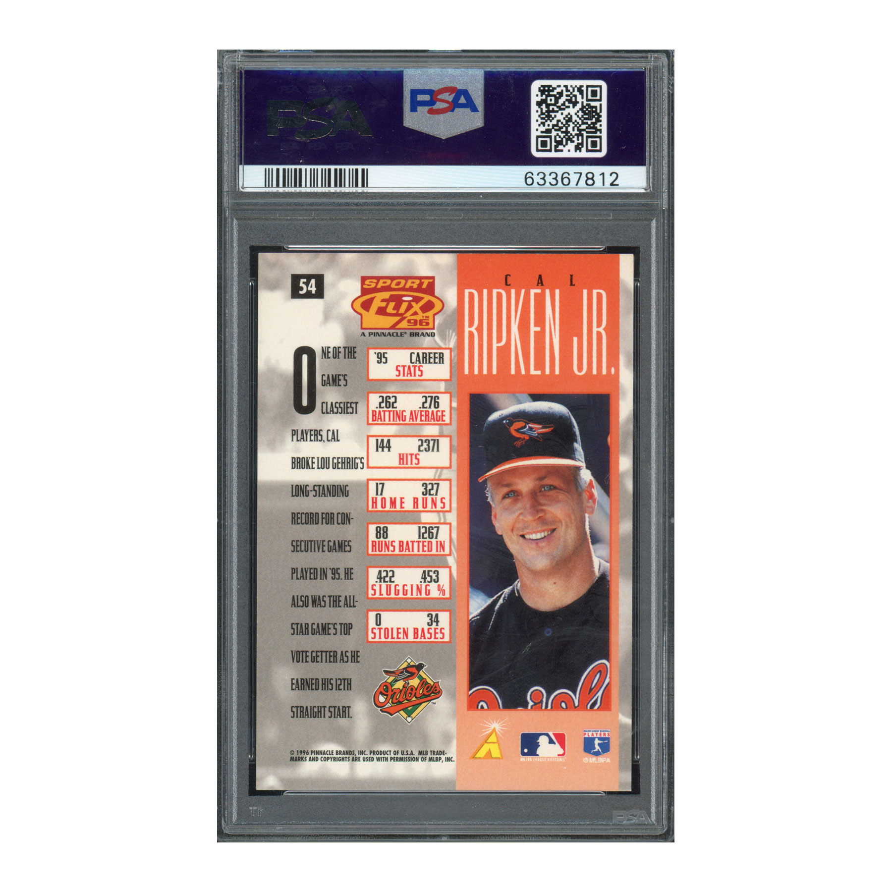 1996 Sportflix #54 Cal Ripken – PSA 10 GEM MINT – Hall of Famer